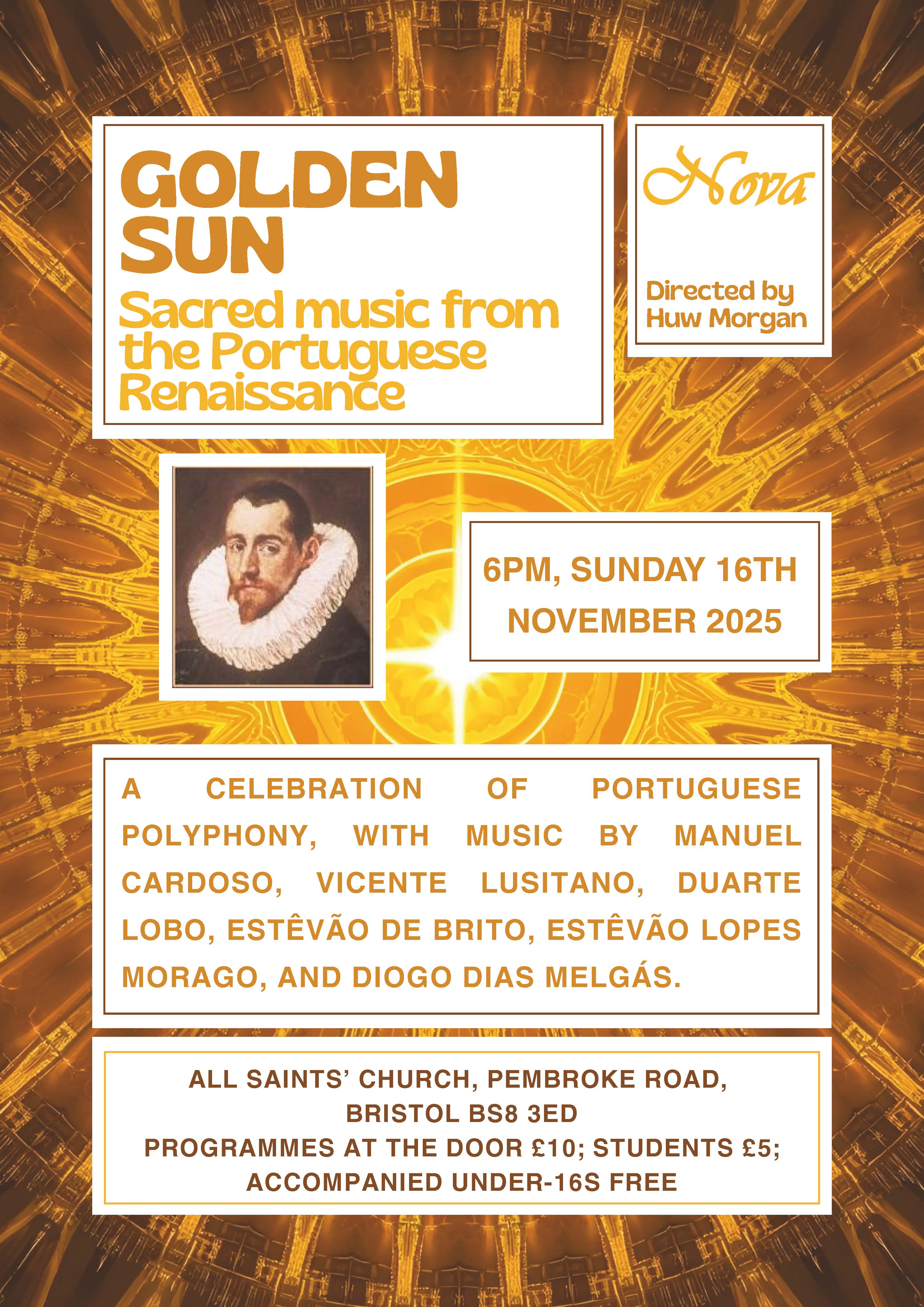 This NOVA concert will be a celebration of Portuguese Polyphony, to feature music by Manuel Cardoso and Vicente Lusitano, including parts of Cardoso’s Missa Miserere Mihi Domine, and motets by Lobo and others. We will be directed by Huw Morgan.
